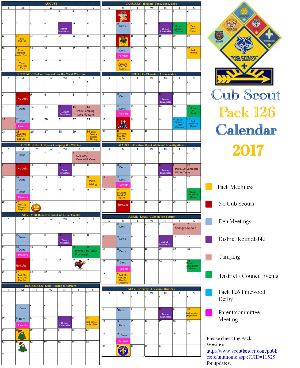 Cub Scout Pack 126 Calendar for 2017-2018